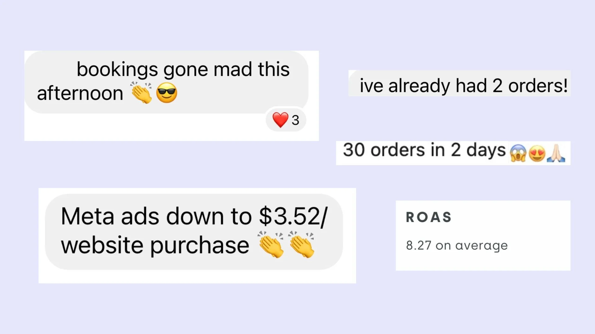 Depends on your offer and audience, but clients often see leads rolling in within days. A client just ran their first ad and got six hot leads who want to sell their houses with them - within 2 weeks of publishing the ad.
